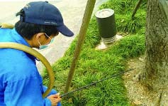 4、噴粉滅治:對已經(jīng)有白蟻危害的樹(shù)木,可采用撬開(kāi)蟻路,采用白蟻滅治粉劑對其進(jìn)行噴粉處理,使白蟻個(gè)體沾染藥粉,傳遞到蟻巢,進(jìn)而達到整巢殺滅。